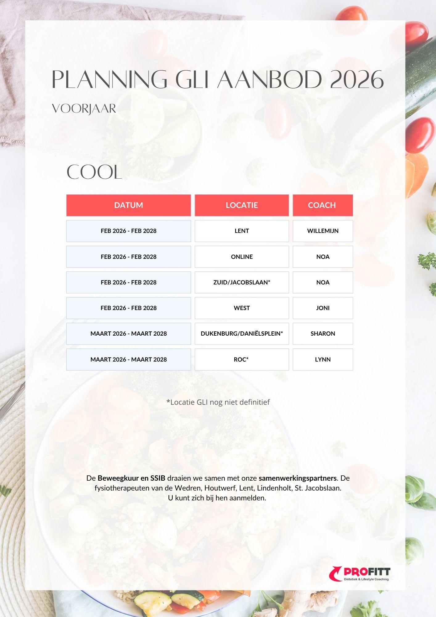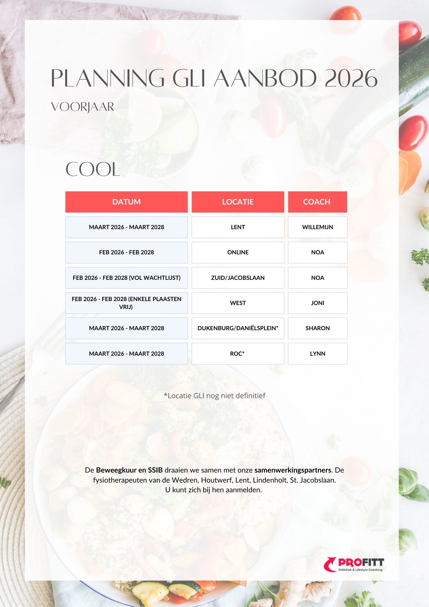 Hiernaast lees je wanneer en waar welke GLI op dit moment wordt aangeboden bij ProFitt. Heb je vragen of wil je je aanmelden? neem dan gerust contact met ons op.